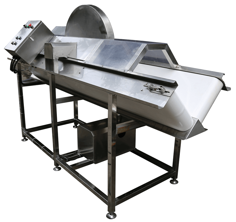 2、 用60度以上溫水將切菜機傳送帶及切片機清洗潔凈。